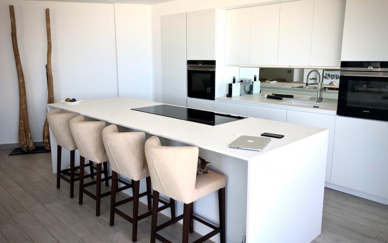 614 Ocean Garden is a Ocean looking 130sqm 3 bedroom apartment with 80sqm of panoramic terrace. The apartment is furnished with high quality design furniture, fully equiped tailor made kitchen and 2 modern luxury bathrooms of which one with bath en suite. The apartment comes with one private parking space. This complex was finished in 2019 and includes a very nice swimming pool area and heated pool. Holiday renting is permited in Ocean Garden. Video or visits on demand.