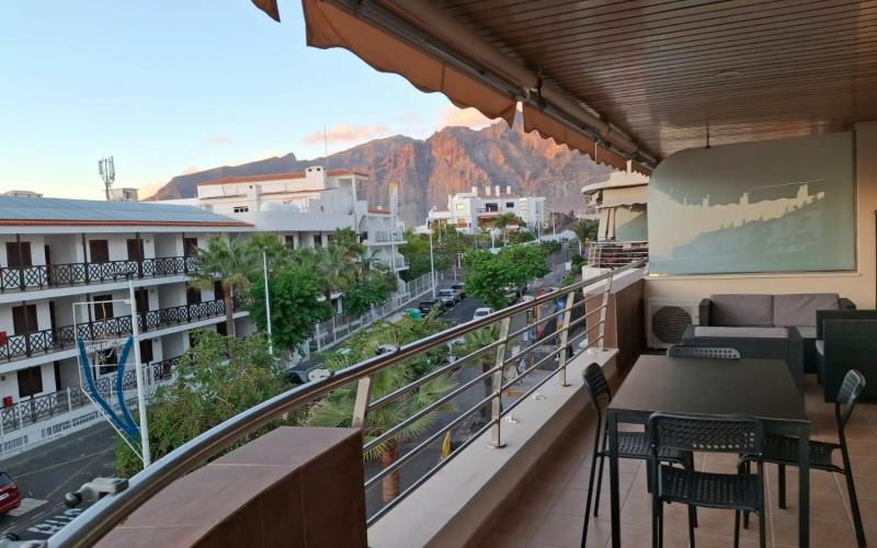 This corner position apartment is situated on the second floor of the complex of Balcon de Los Gigantes. Offering easy access via lift, this property comprises of two double bedrooms, two bathrooms, lounge and open plan kitchen with breakfast bar. Sold pleasantly furnished, this property is also fitted with air conditioning. The large wrap around terrace is accessible from both double bedrooms and the lounge and offers views of the area. Located in a well maintained complex with communal swimming pools, close to all local amenities. On site parking space also included.