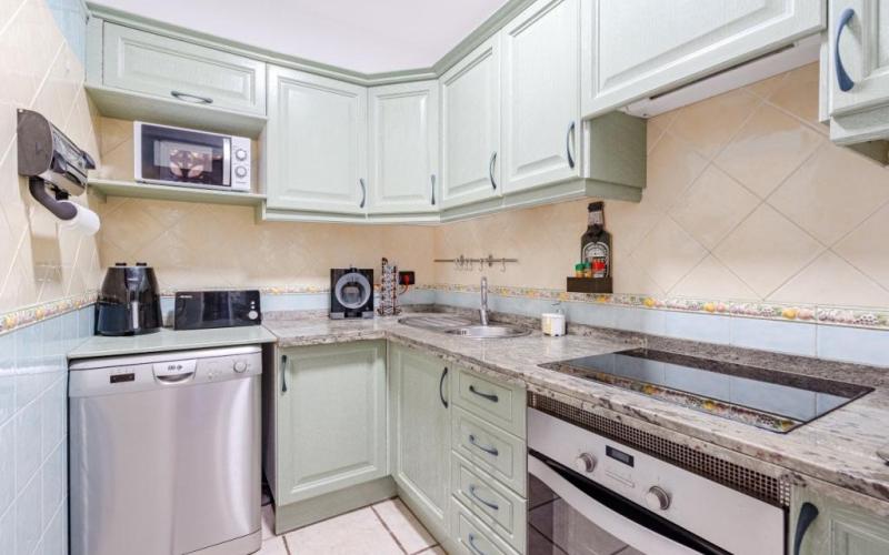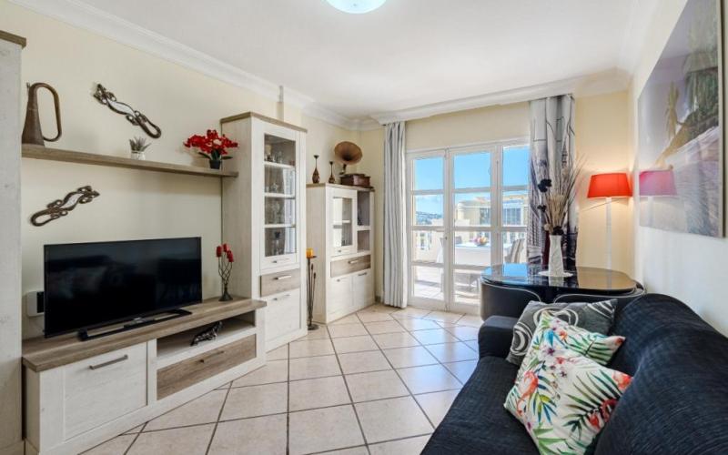 This charming, fully furnished apartment is located in the quiet and prestigious Benimar complex, situated in the desirable area of Fañabé Bajo, in Costa Adeje. The property offers a spacious bedroom, which includes 2 bathrooms, one of them en suite, providing maximum comfort and privacy. The spacious living room is perfect for relaxing moments, while the independent kitchen, equipped with a practical laundry room, facilitates daily life.