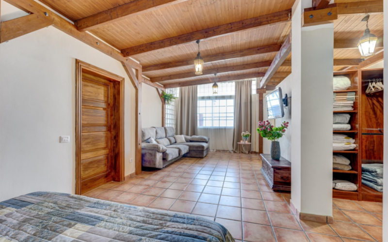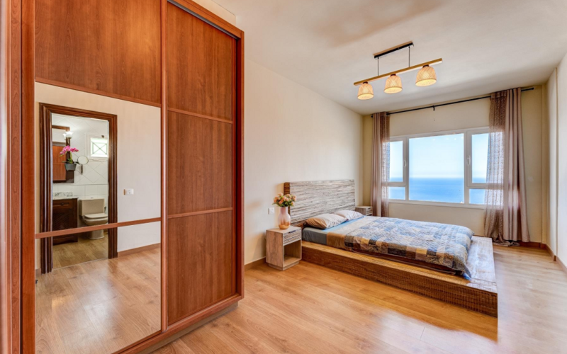 On the ground floor there is a parking area, a large terrace with open plan fully equipped kitchen and barbecue. It also has an independent bathroom and a spacious bedroom with bathroom en suite. On the first floor there is a bright living-dining room with fireplace and spectacular views. The kitchen is fully equipped. This floor also houses a large bedroom with en suite bathroom, another bedroom with twin beds and a separate bathroom. The third floor has a panoramic terrace with views of the Atlantic, heated swimming pool, large garden, sauna area with shower and a bedroom.