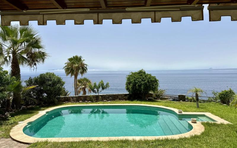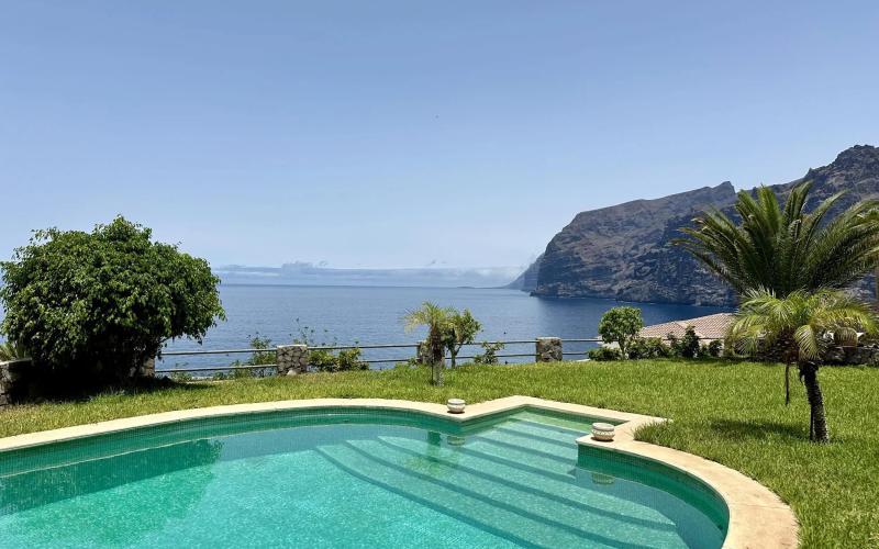 Esta propiedad única se encuentra en la Calle Pino en Los Gigantes. Ubicada dentro de su propio terreno privado en una parcela de 702m2, esta propiedad alberga amplias terrazas y jardines con una piscina privada climatizada. La propiedad se ha construido en dos plantas, con la planta baja que alberga una gran sala de estar, comedor, cocina totalmente equipada con trastero, un baño y una zona de pérgola cerrada ideal para disfrutar de las puestas de sol por la tarde. Una hermosa escalera flotante conduce al nivel superior donde se encuentra el dormitorio principal de un tamaño fabuloso, con un gran baño en suite y un grande vestidor, también hay dos dormitorios dobles adicionales, dos baños y una oficina, cual podría convertirse en un cuarto dormitorio. Los terrenos cuentan con las vistas más increíbles del puerto, los acantilados y el mar hasta la isla de La Gomera. También se beneficia de sol durante todo el día, tranquilidad y con un gran garaje privado de 40m2 también incluido, situado debajo de la propiedad.