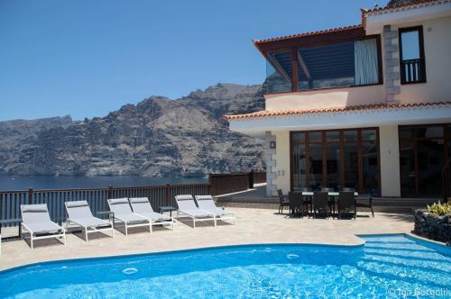 Experience the pinnacle of coastal living in this majestic six-bedroom, six-bathroom villa, positioned on a cliff top above the pristine beach of Los Gigantes.