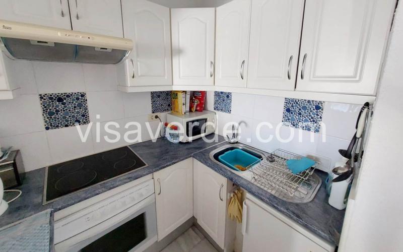 The apartment is spacious and offers a comfortable bedroom with fitted wardrobe, bathroom with bathtub, half open kitchen with breakfast bar and an adjacent terrace of 14m2 with partial sea views and afternoon sun. The apartment is equipped with air conditioning and all necessary amenities.