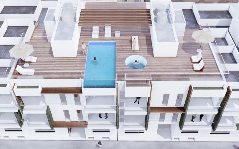 It has furnished kitchen and it has ascensor, equipped kitchen, terraza, building with parking lot, luminous, wardrobe, exterior, furnished, communal swimming pool and aire acondicionado.