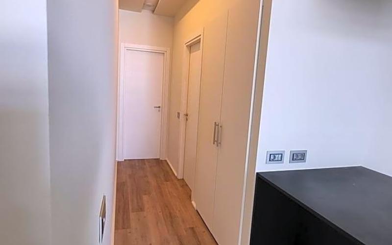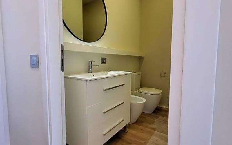 It consists of a large terrace of 32m2, living room with an open space with furniture and kitchen, made in Italy, with all appliances. Then we find a corridor where there is a washing machine and boiler room, a fully equipped bathroom and an en-suite bedroom with built-in wardrobe and bathroom with shower. The interior surface of the house is 70m2. The house also has an air conditioning system and a ducted forced air system with two turbines for extraction and emission of sea air. As you can see in the photos the flat is completely refurbished.