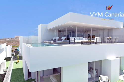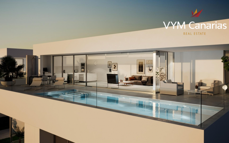 SYBARIS SEAFRONT CONTEMPORARY STYLE AND LIGHT. Phase 3. 55 Premium Villas. All the thrills of light and space stretching out onto the endless blue horizon that only the open sea can offer. Enjoy style and luxury every day, in every detail. - Large plot; - 3 bedrooms and 3 bathrooms; - Private pool; - Private garage; - Fully equipped kitchen; - Air conditioner. The SYBARIS villas, standing just 100 metres from the seafront, are the best possible choice for a life of tranquillity enjoyed in one of Tenerife’s prime locations: the Rokabella residential area, nestling on Costa Adeje in the south of the island.