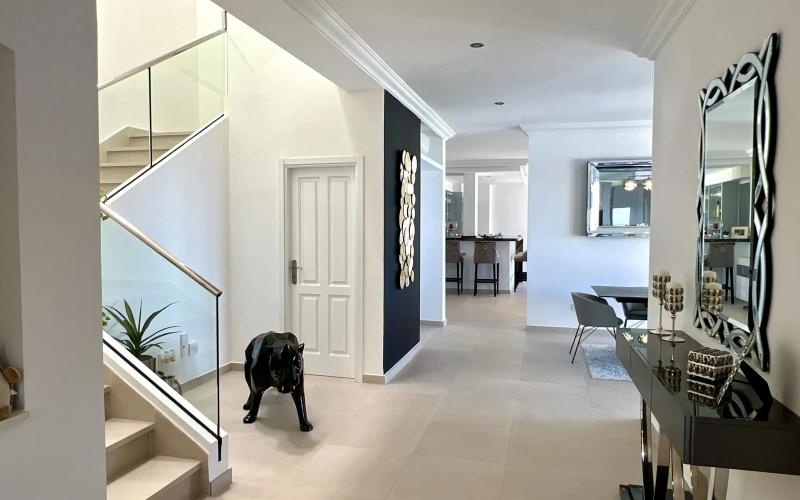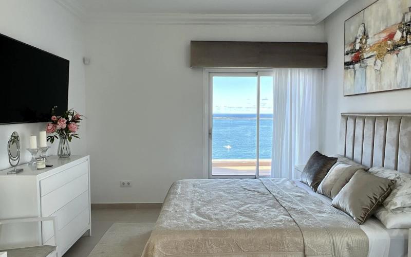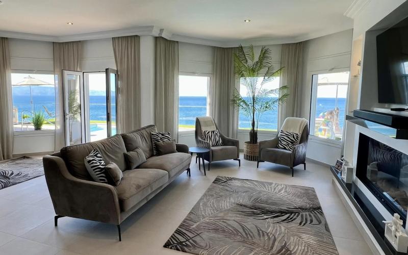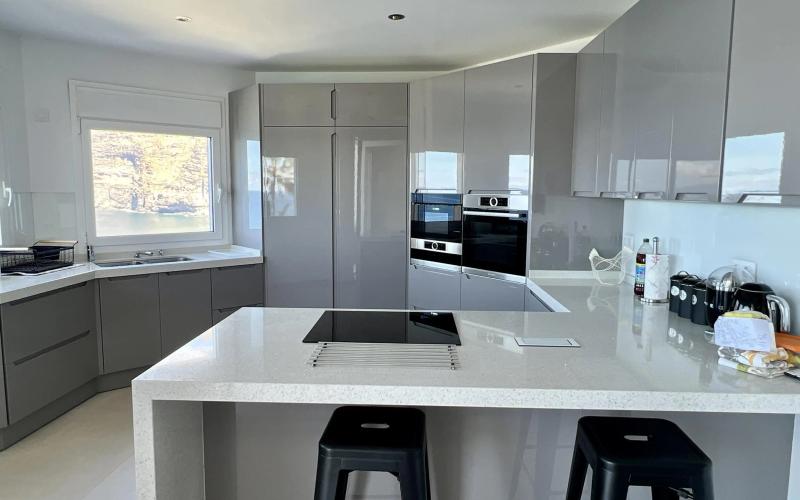 This luxury front line villa has been completely refurbished and renovated to the highest standard, using the highest quality of materials. Offering everything your heart desires in a property, this magnificent home is ready to be used as a permanent residence or for luxury holidays. The extensive terraces boast amazing front line sea and cliff views, a private swimming pool, Jacuzzi, outside dining and BBQ area, all of which benefit from all day sunshine. The interior of the property is spacious and bright and has been uniquely designed in a luxurious minimalist theme with all exquisite furnishings matching to its interior design. Boasting three spacious double bedrooms all of which have an en-suite bathroom, open plan kitchen with dining area, lounge with fully fitted bar, utility room, cloakroom, gymnasium, lift and private garage, If you are looking for a front line, luxury property, this is a real must see.