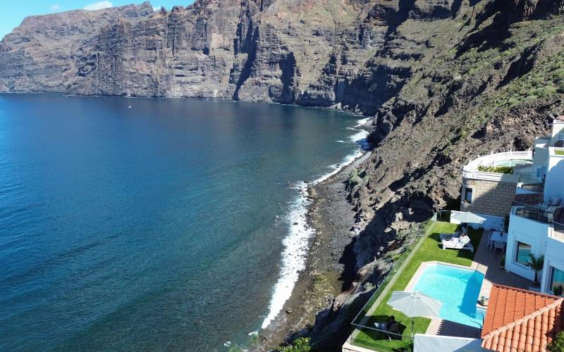 Esta propiedad única se encuentra en la Calle Pino en Los Gigantes. Ubicada dentro de su propio terreno privado en una parcela de 702m2, esta propiedad alberga amplias terrazas y jardines con una piscina privada climatizada.