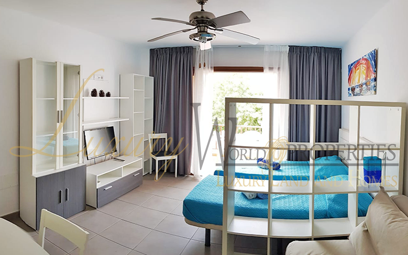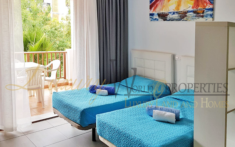 Charming Studio in Paraíso Royal, Playa de las Américas – Ideal Investment. Luxury World Properties is pleased to offer this charming studio, located in the Paraíso Royal complex in Playa de las Américas. It is just a few steps from Tenerife’s golden beaches. With 34 m² thoughtfully distributed, the property includes a bathroom, a bright living area with an integrated American kitchen, and a private 8 m² terrace perfect for relaxing. An elegant bookshelf subtly separates the sleeping area, ensuring privacy and comfort.