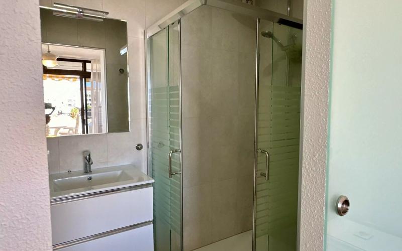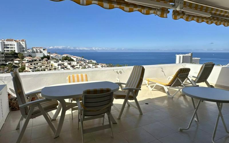 Situated in one of the most tranquil areas of Los Gigantes, this property is a must see. Fully refurbished, with a modern open plan kitchen, cozy living room with a dining area and a separate shower room, it invites you to enjoy the stunning views from both the living room and the double bedroom with a recently renovated en suite shower room. The private outside terrace, which can be accessed from the living area and the bedroom, offers all day sunshine and boasts breathtaking views to the ocean and the island of La Gomera. For added comfort, new electric blinds are installed, allowing you to adjust the shade and privacy with ease. You can reach the communal pool, Los Gigantes and all the local amenities within minutes walking. This apartment is ideal relaxing retreat with all the charm of Los Gigantes coastline.