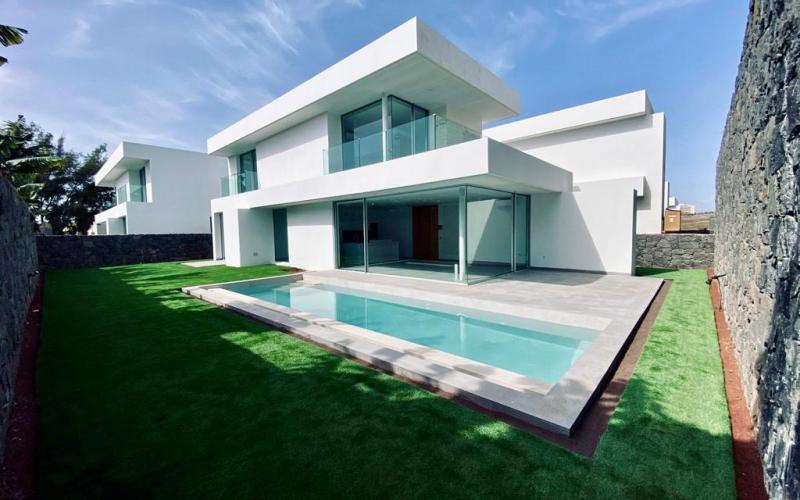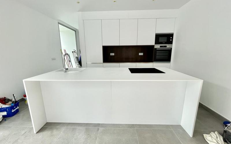 New construction, independent Villa with 3 bedrooms and 3 bathrooms, distributed over 2 floors plus basement. Basement with garage for two cars, laundry room and multipurpose space of 13 sqm; Direct access to the first floor with an open plan kitchen to the living room area, with direct access to the outdoor terrace, garden and heated pool. It also has a bedroom and a full bathroom. The upper floor has two bedrooms, both with their own en-suite bathrooms and a private terrace.