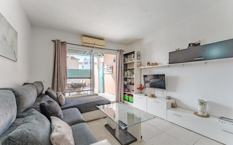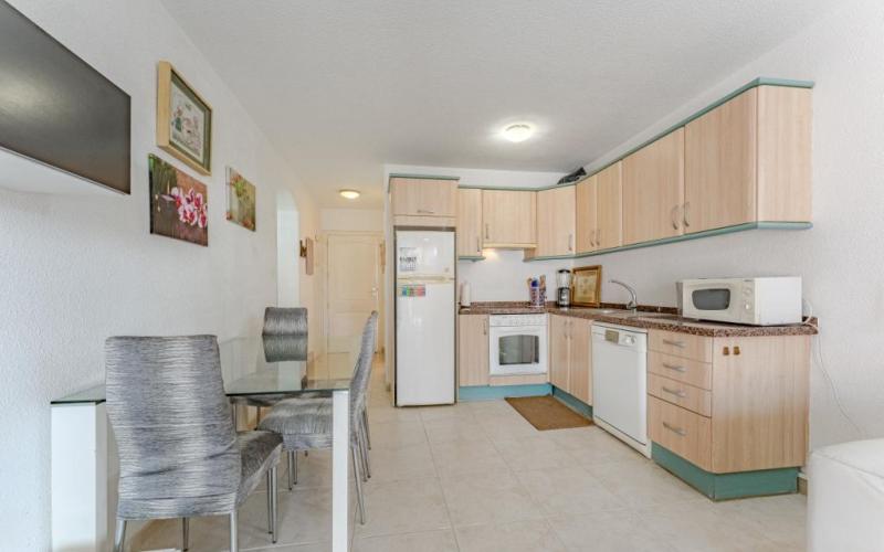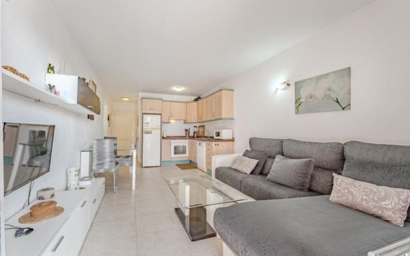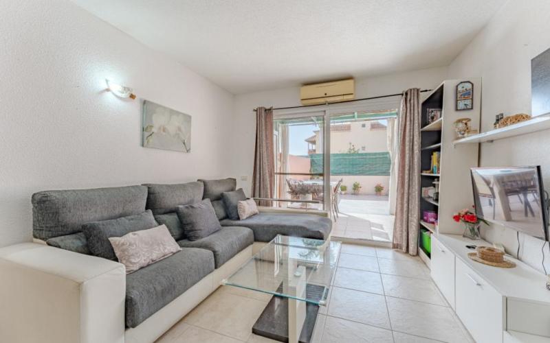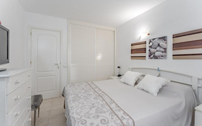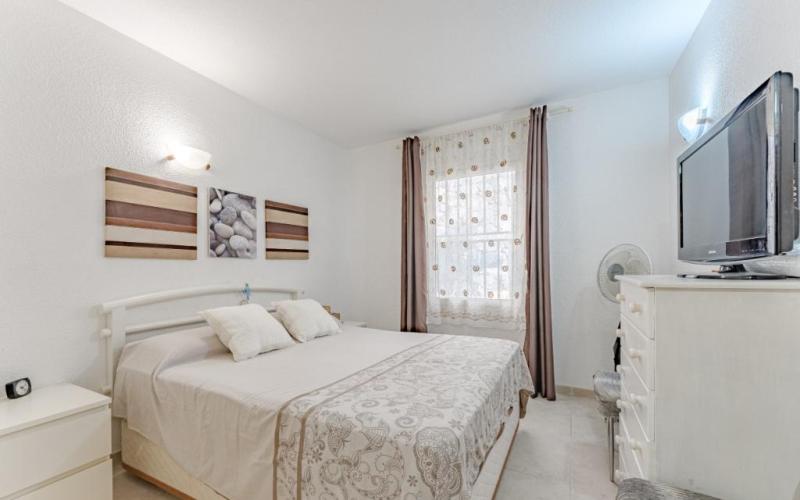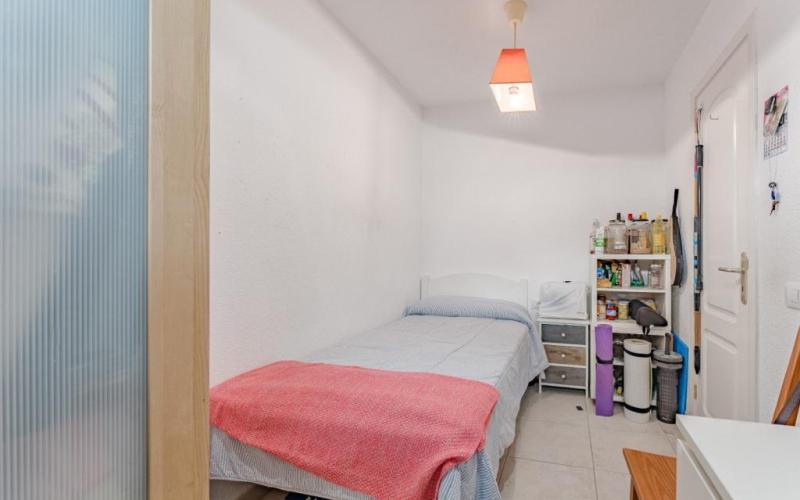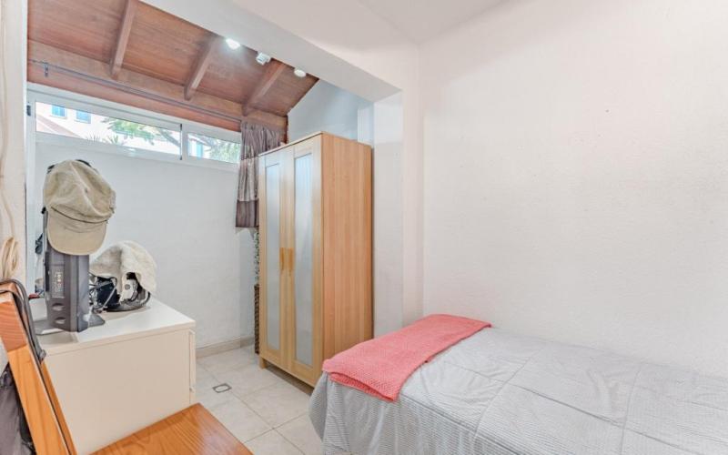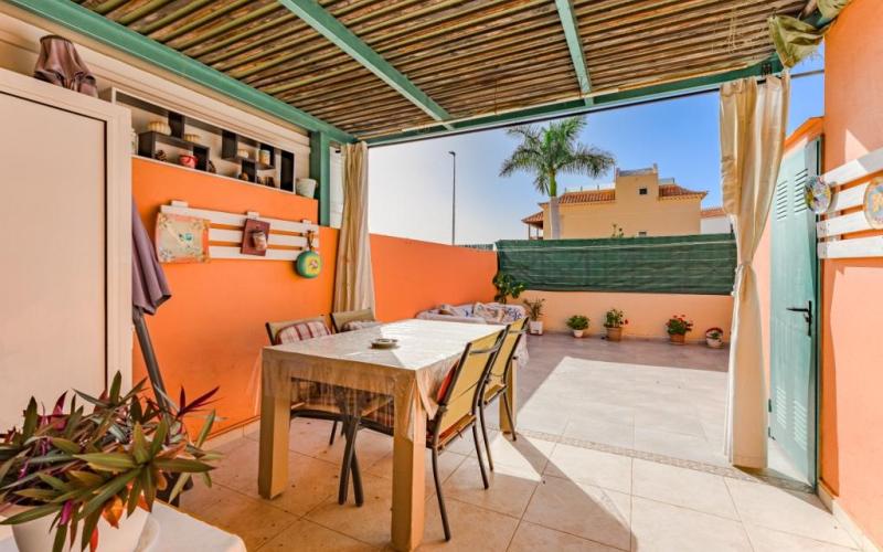 Nice bungalow in the prestigious area of El Madroñal. It has a double bedroom and a single bedroom, bathroom, living room with open kitchen, large 30 m2 terrace, outdoor parking space (but storage room in the condominium enclosure. The complex is very well maintained, has a shared swimming pool (soon to be air-conditioned ), gardens, CCTV security cameras and free Wi-Fi area. It is located near a nice municipal playground, bars, restaurants, X-SUR shopping centre, international private school... and above all, 5 minutes by car drive from Puerto Colón and the most beautiful beaches of Costa Adeje, such as Bahia del Duque, Fañabè and Torviscas. Excellent for living or as an investment, to rent and receive a good income.