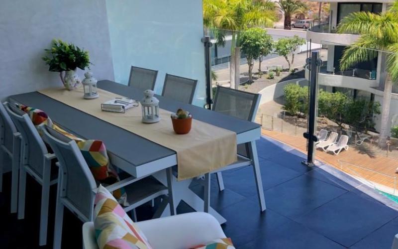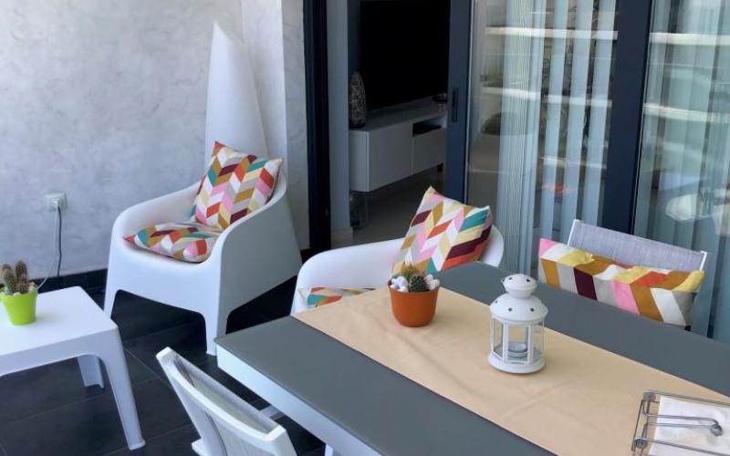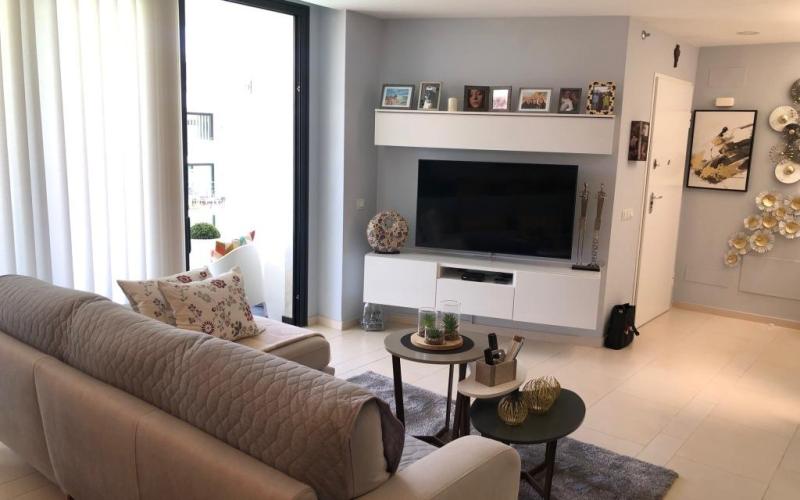 Beautiful penthouse apartment, 2 double bedrooms with fitted wardrobes, master bedroom with en-suite bathroom and direct access to the terrace. Spacious and bright living room furnished and decorated with exquisite taste, with direct access to the second terrace, equipped with furniture to enjoy pool and mountains views as well as for outdoor meals.
