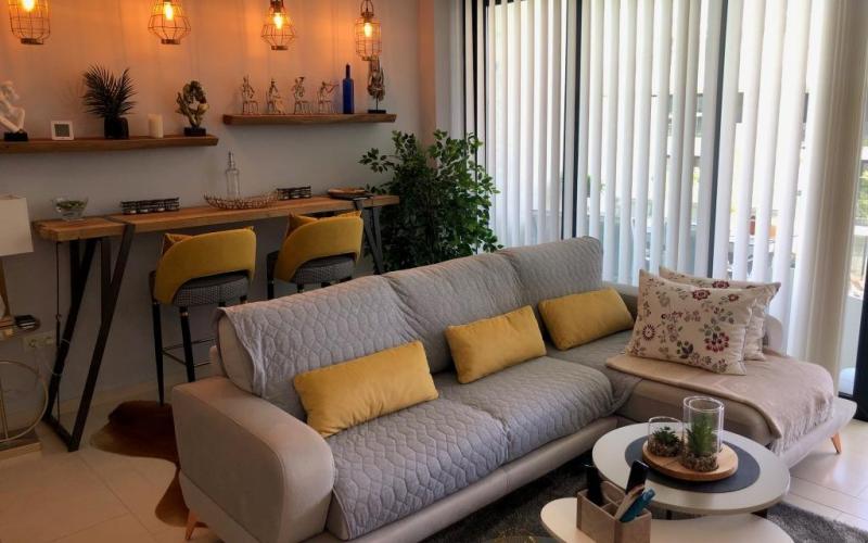 Impeccable 2 bedroom 2 bathroom apartment, with beautiful high end finishings to be sold furnished. Nice size living room that opens to a large terrace with an awesome sea view. American style kitchen fully fitted with all appliances.