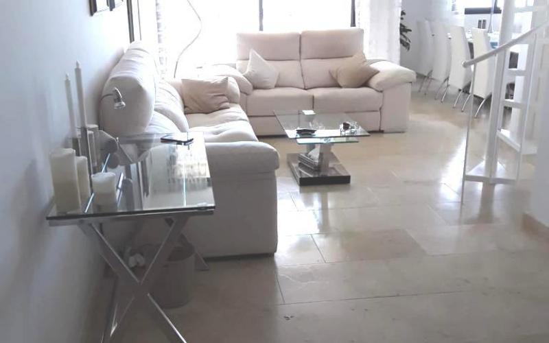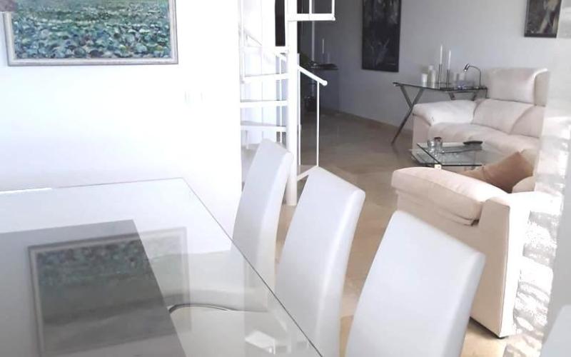 Beautiful Duplex Penthouse with 2 Bedrooms 2 Bathrooms, open style kitchen fully equipped with state-of-the-art appliances, spacious living room with access to the terrace, two large bedrooms with fitted wardrobes; two full bathrooms. It is sold furnished. Access to the upper floor by internal spiral staircase. Large terrace with sea views.