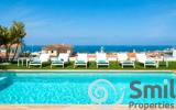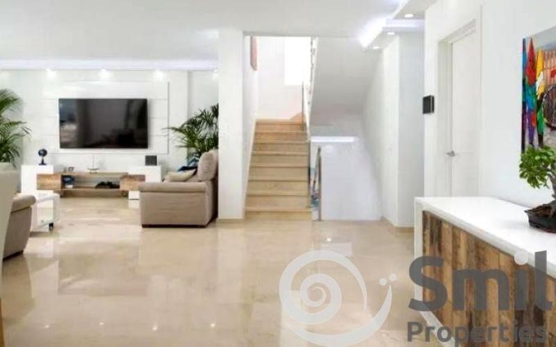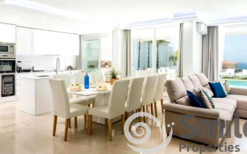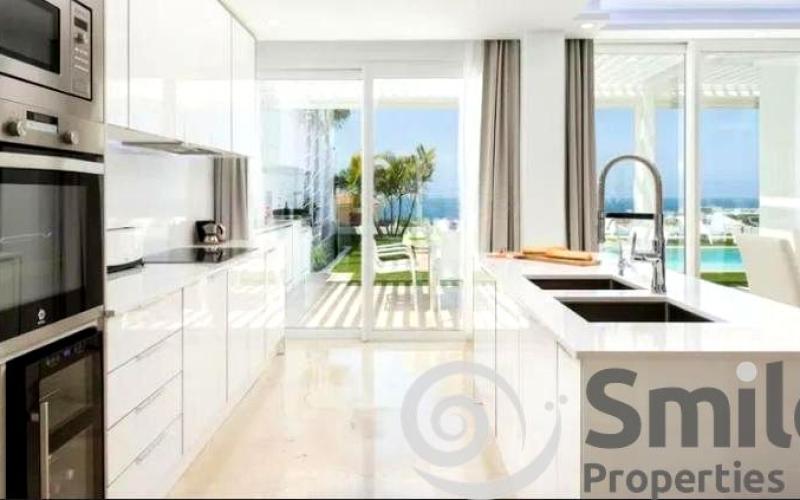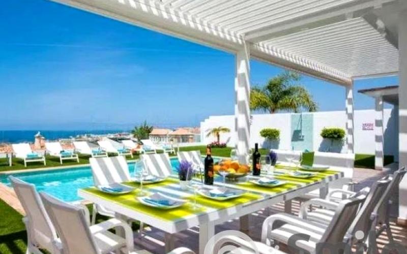 It is distributed over three levels with 6 bedrooms and 6 bathrooms. On the ground floor, there is a large living room with views of the garden, pool, and sea, a modern fully equipped kitchen, 2 double bedrooms with 2 full bathrooms with showers, and a third service bathroom.
