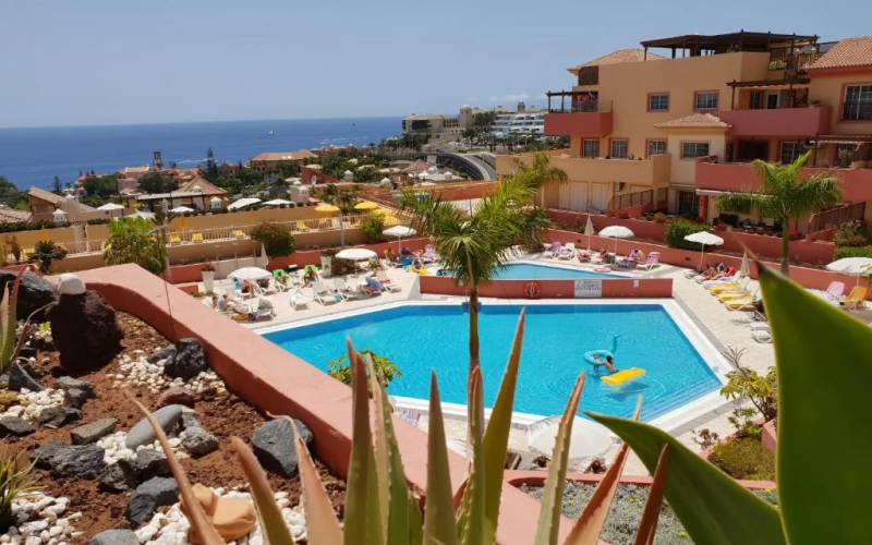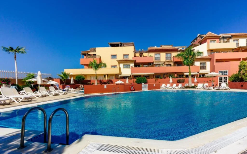 Instalaciones del complejo: Terrazas del Duque II es un complejo de lujo que ofrece dos piscinas comunitarias climatizadas para el disfrute de sus residentes durante todo el año, además de un centro de masajes y spa para una experiencia de bienestar completa. El complejo se encuentra en una ubicación inmejorable, cercano a todos los servicios esenciales, como farmacias, supermercados y a pocos minutos de los centros comerciales más exclusivos de Costa Adeje.
