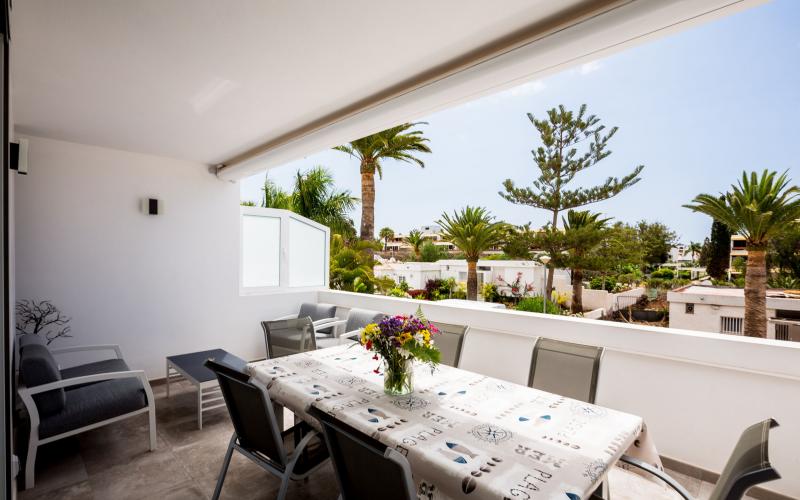 Chalet adosado a solamente 5 minutos de Playa San Juan, de 3 dormitorios, 2 baños, cocina abierta completamente equipada, garaje cerrado de 64 m2 con puerta automatica, placa solar, patio interior y grande azotea con cocina de verano. Vista al Oceano maravilloso y la Costa.