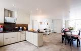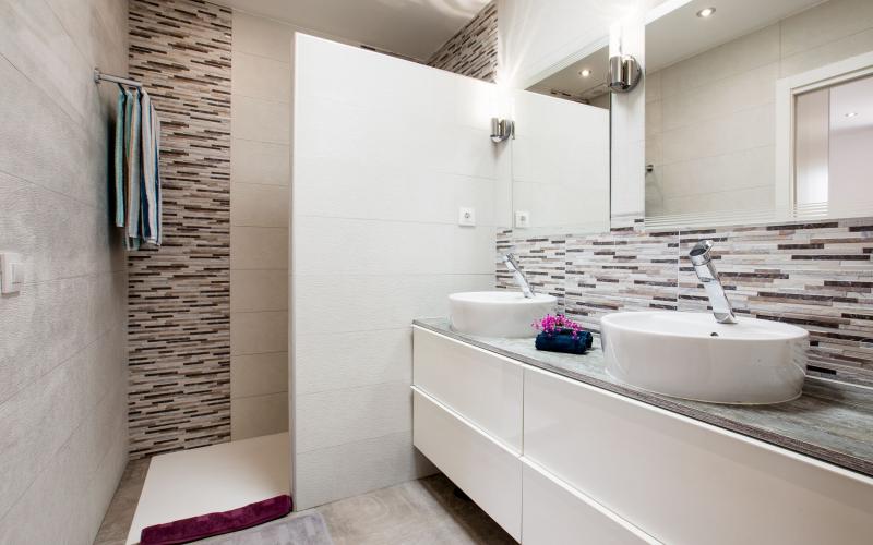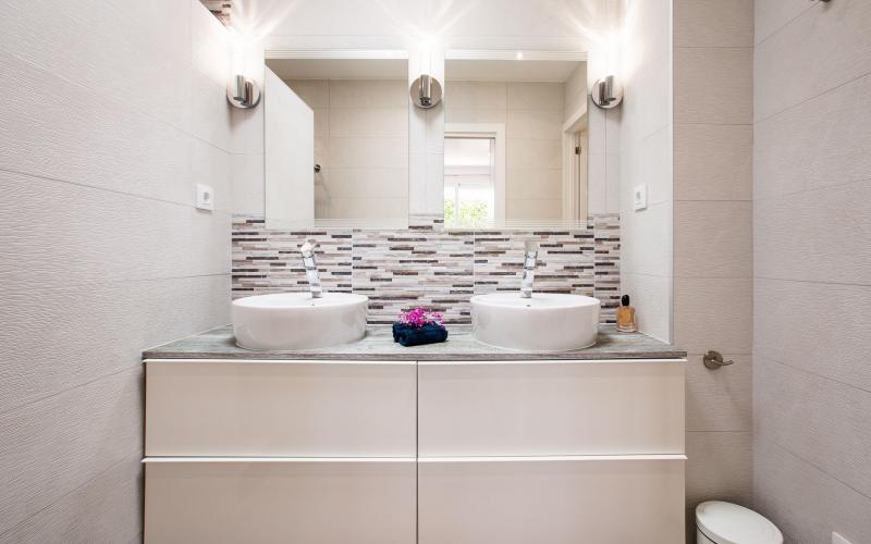 El apartamento superior tiene una superficie de 97,50 m2 con 2 dormitorios con baños y una cocina totalmente equipada y abierta al salón.
