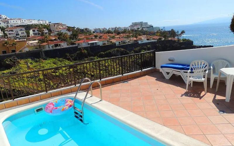 Esta propiedad única se encuentra en la Calle Pino en Los Gigantes. Ubicada dentro de su propio terreno privado en una parcela de 702m2, esta propiedad alberga amplias terrazas y jardines con una piscina privada climatizada.