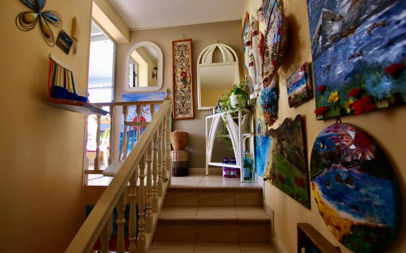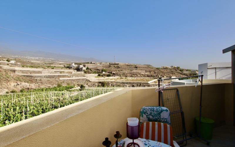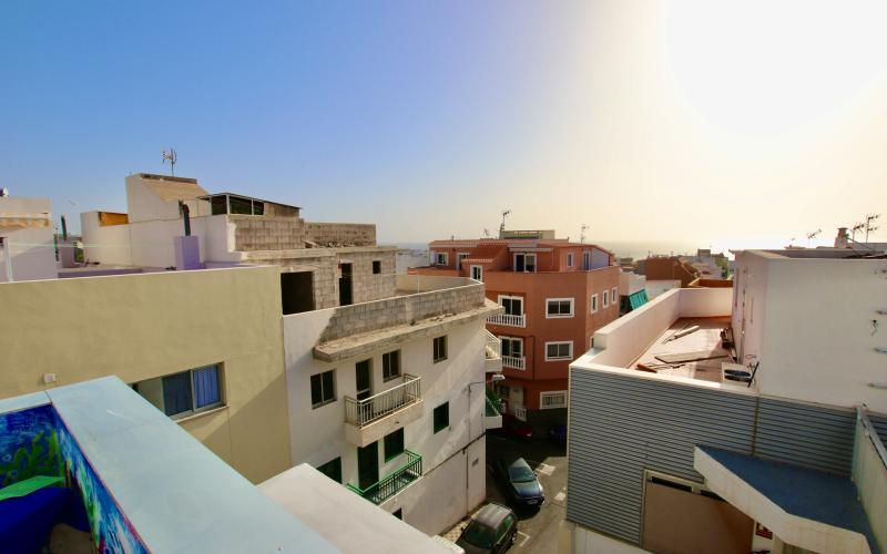 Corner penthouse for sale, in Alcalá, a coastal town in the south of Tenerife, on the first floor there is a double bedroom, a small bedroom, a full bathroom and a kitchen, going up the stairs you can find a terrace where there is a second kitchen and a room where you can eat and sunbathe on the two side terraces, the apartment is decorated to the taste of its owners and most of the things will be taken with them when they move, the furniture will stay in the apartment but the decorations will not. There is a comfortable garage where you can store the car. The area is very beautiful, nearby beaches and walks. Shops and restaurants. An ideal place to live and spend your holidays.